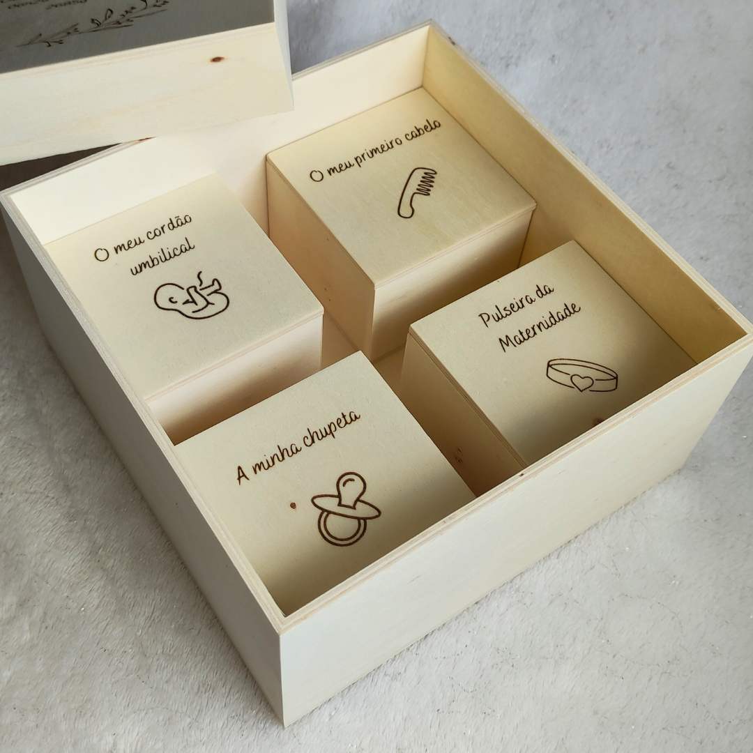 A nossa caixa de recordações é perfeita para guardar os momentos mais preciosos da vida do seu bebé ou para oferecer como presente a alguém especial que está a viver esta fase mágica.